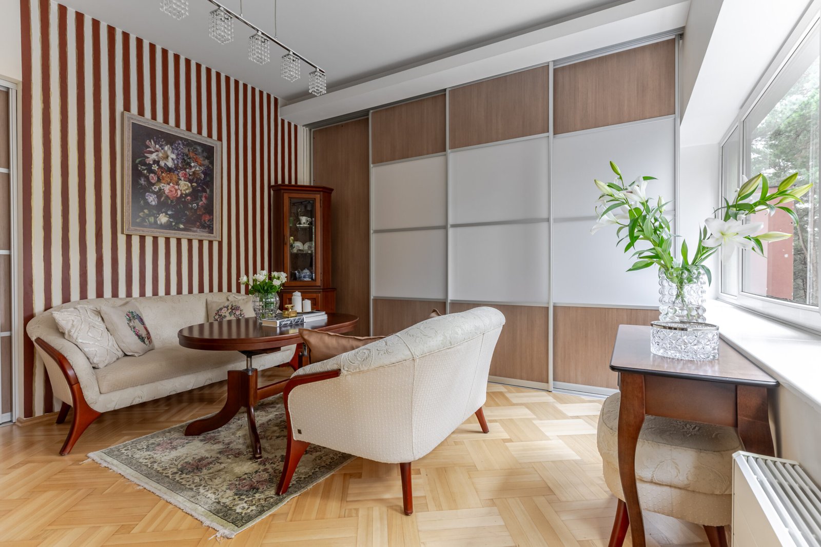 – Svetainės dalis atskirta sienine spinta ir įrengtas jaukus, komfortiškas miegamasis