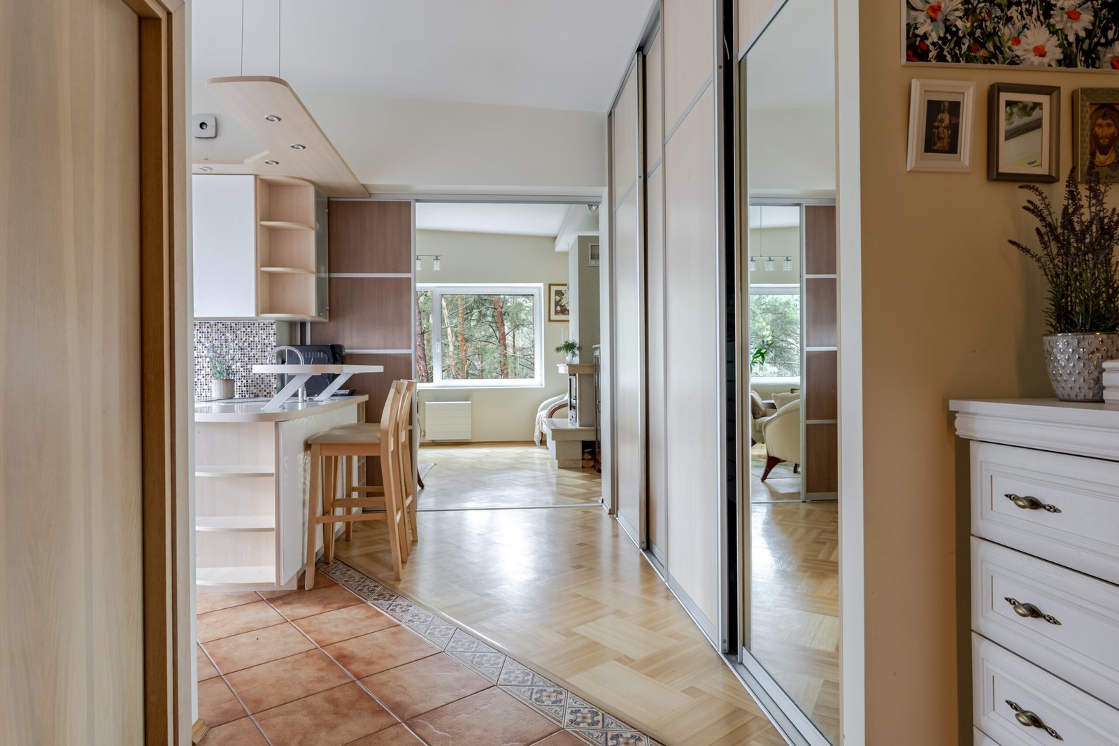 Įsivaizduokite vakarus su spragsinčiu židiniu, žaliai linguojančiu pušynu už lango. Skamba kaip užmiesčio sodyba, tačiau tai komfortiškas ir patogus butas Baltupiuose, su visais miesto privalumais šalia.