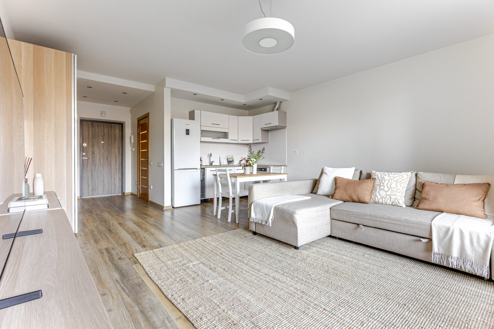 • Studio tipo išplanavimas leidžia patogiai organizuoti gyvenimą vienoje erdvėje – tai praktiškas ir funkcionalus sprendimas.